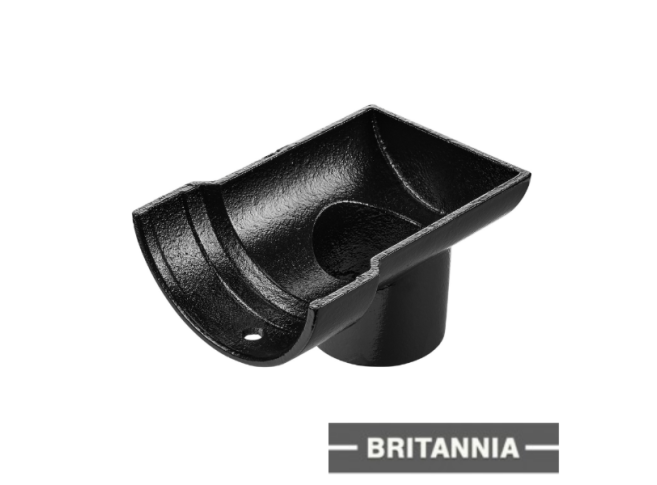 4.5" Plain Half Round Gutter Dropend Outlet 2.5" Internal - Black